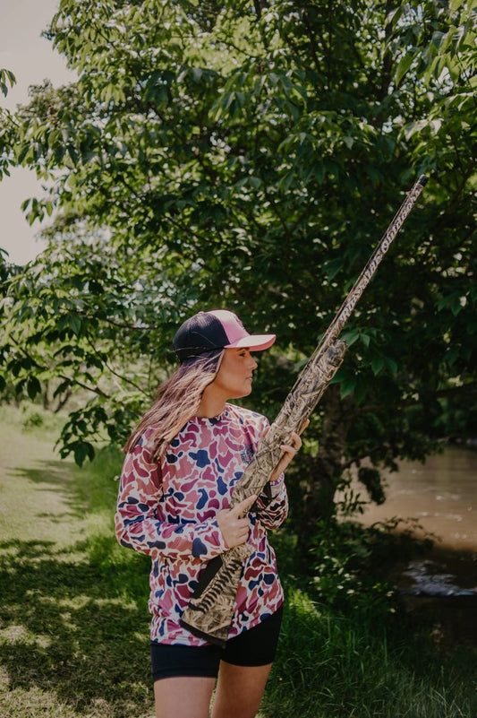 Long Sleeve Camo with Orange lettering